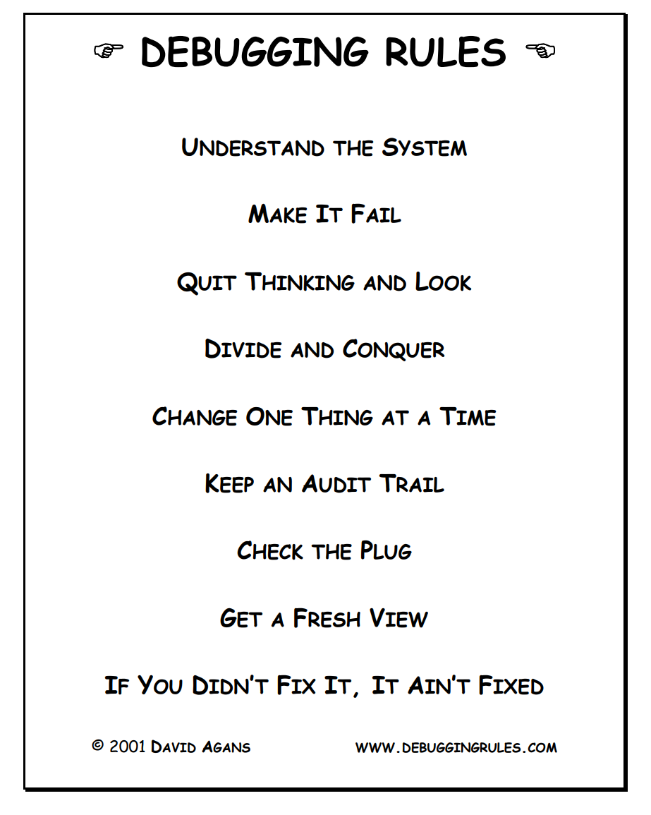 I highly recommend the book: Debugging Rules