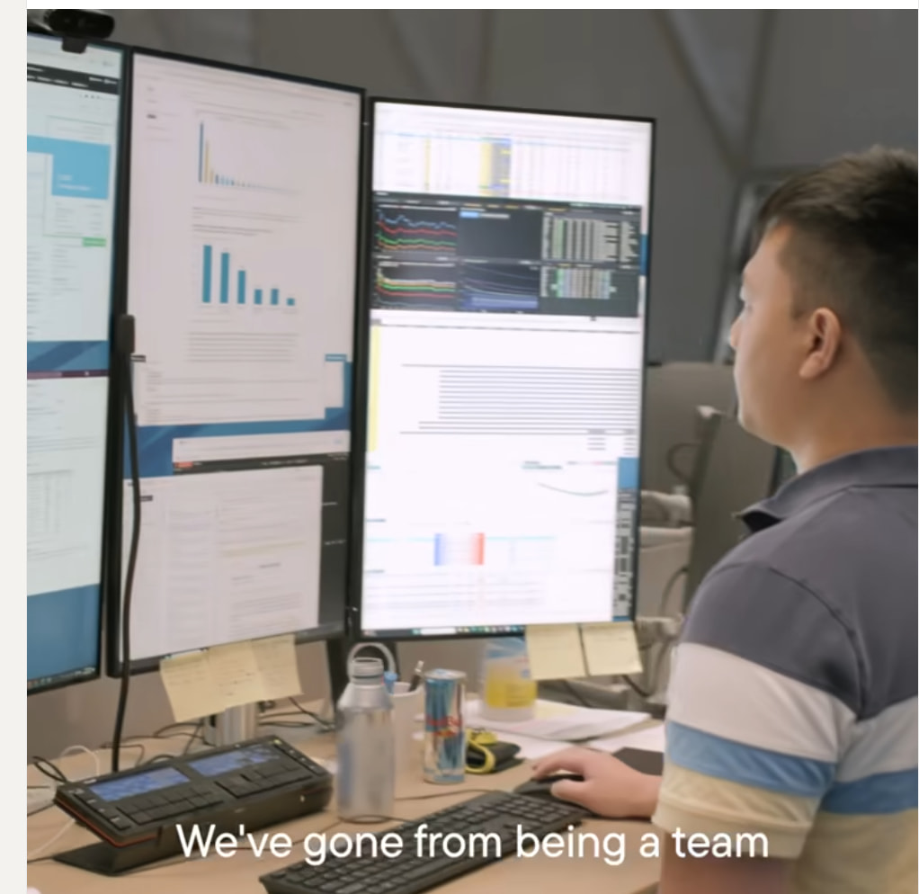 One more observation – with all monitors horizontal, the outer two 1/2 screens on the far left and right were rarely actively used, just because they were so far away, so typically things like chat applications got parked there. With the vertical screens, this space seems more usable.