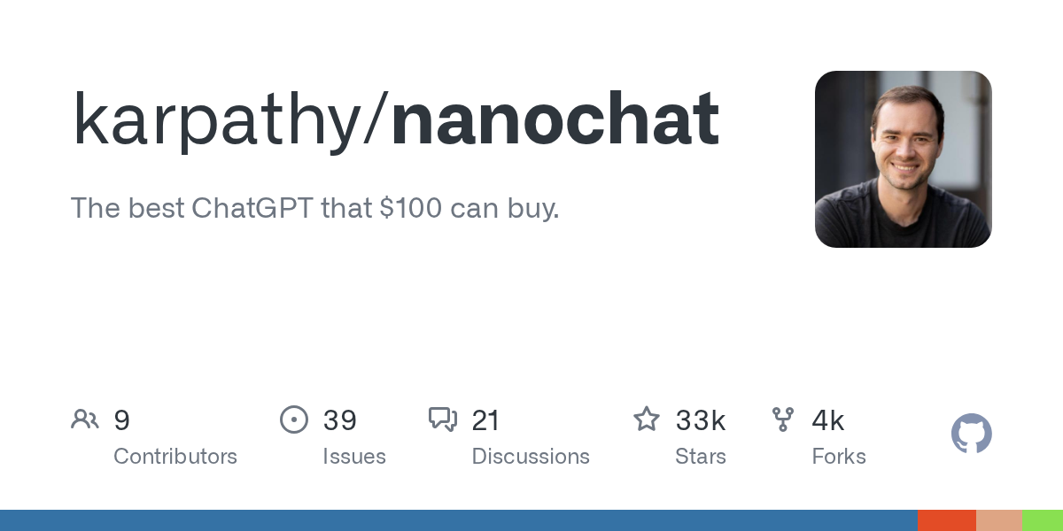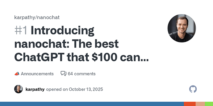 GitHub - karpathy/nanochat: The best ChatGPT that $100 can buy